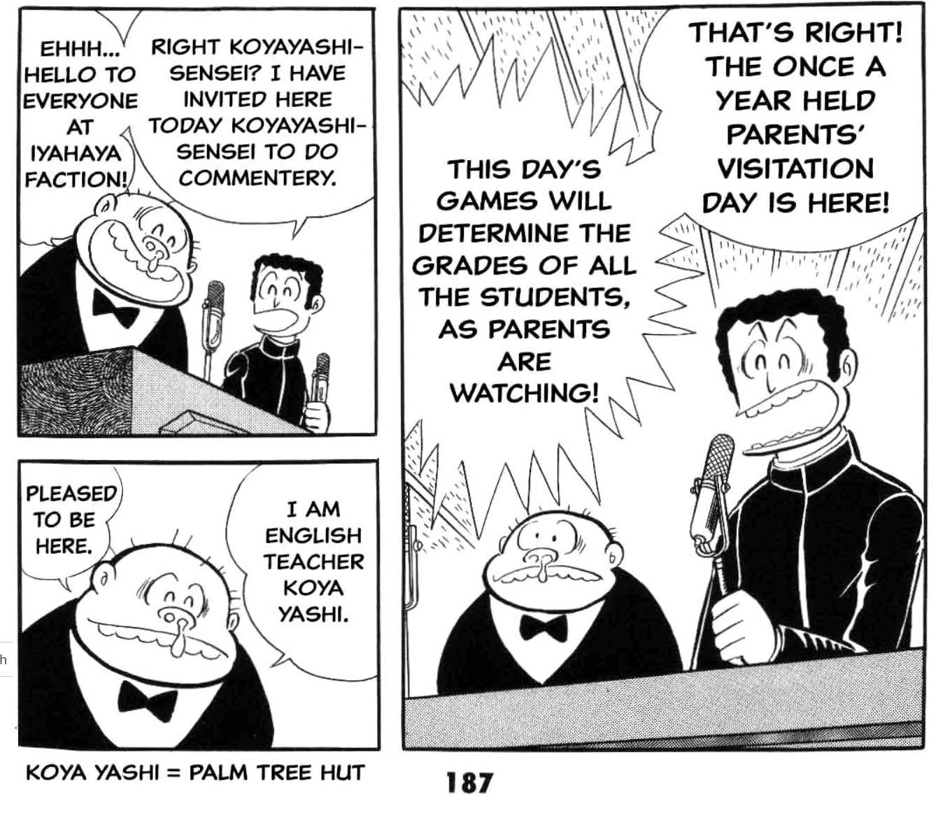 In here he's a commentator with Koyayashi on the games between the schools